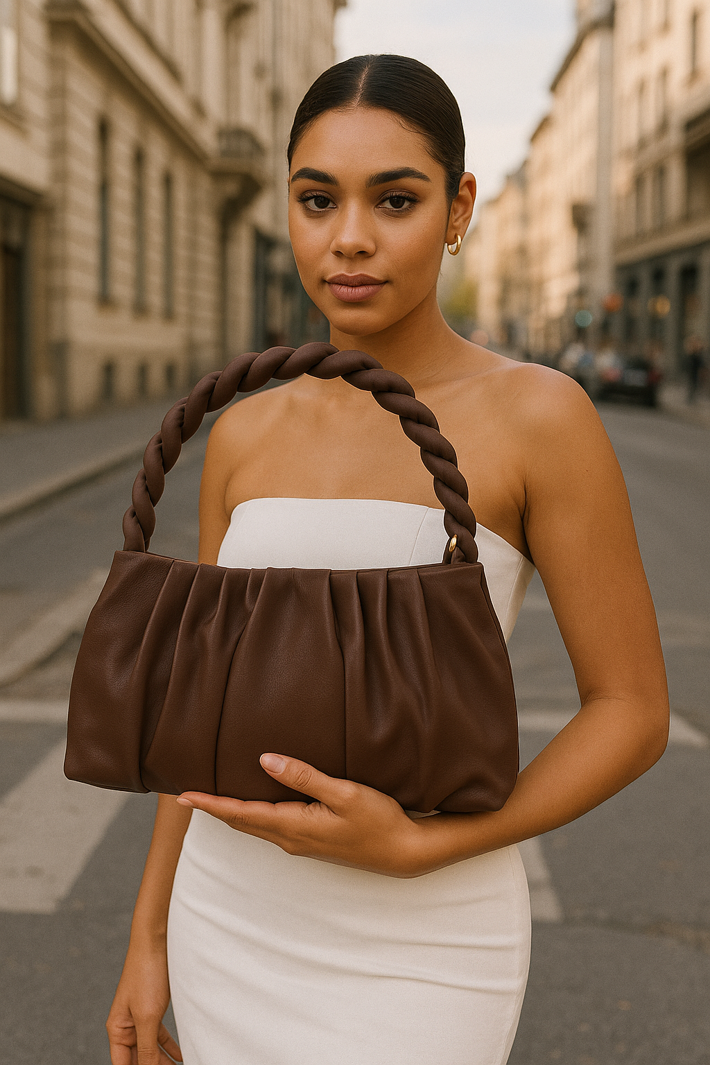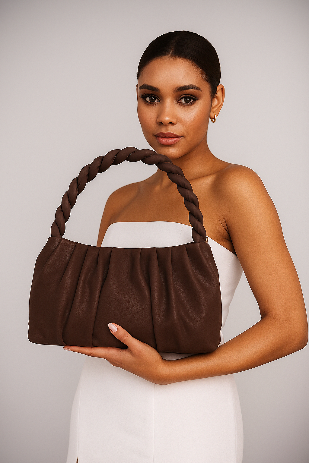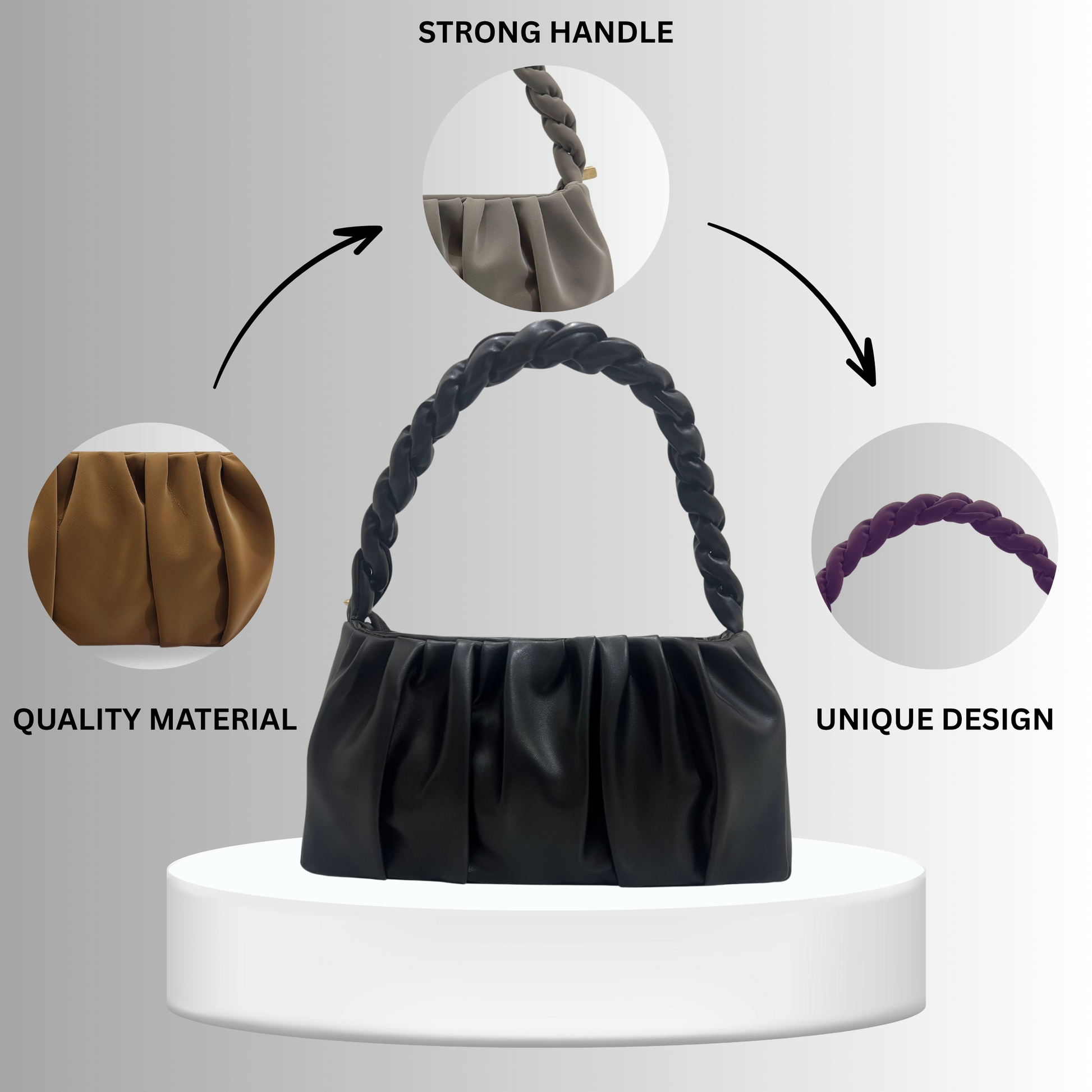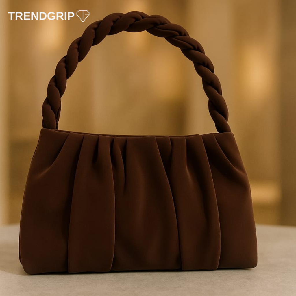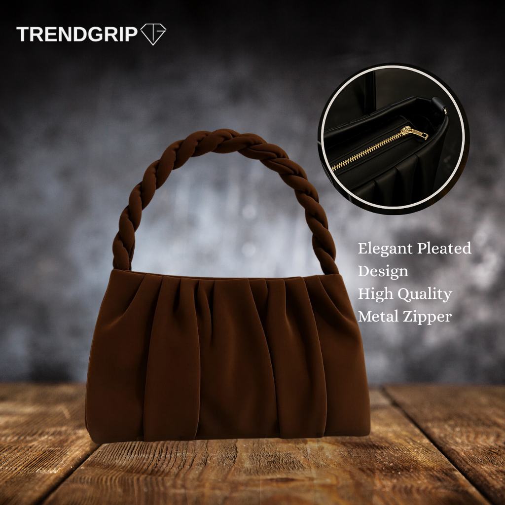 Elegant Pleated Shoulder Bag for Women – Soft Faux Leather Handbag with Braided Handle Wine Color