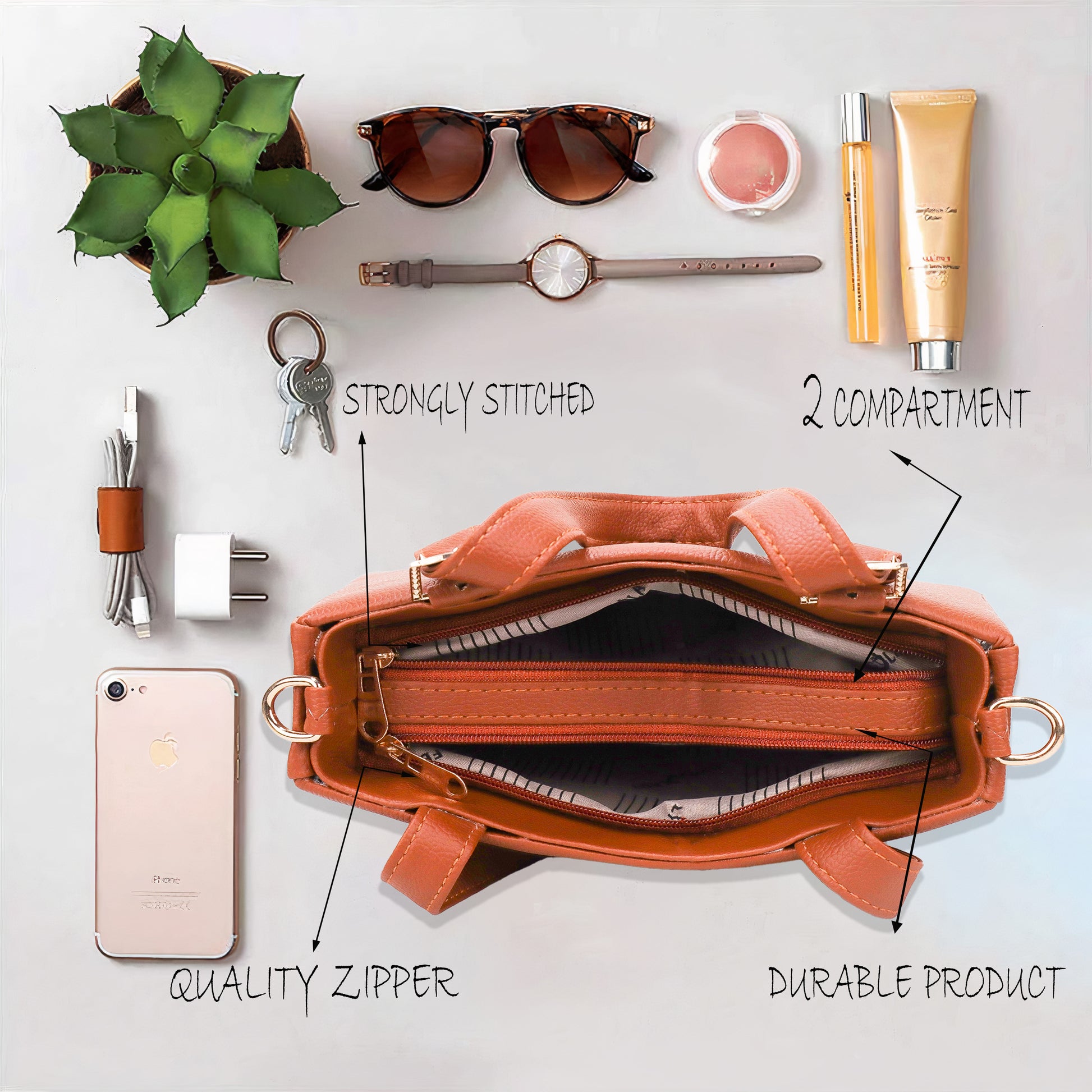 TRENDGRIP Hand Bag For Women. Stylish Tan Color |Hand Bag with strap