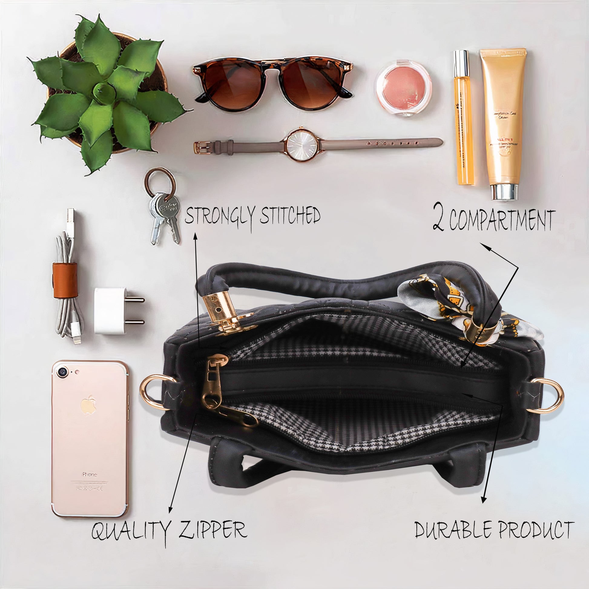 This black ribin sling bag offers both style and functionality. The sleek design and durable material make it the perfect accessory for everyday use. With a convenient sling strap, it provides hands-free carrying and easy access to your essentials. Stay organized and fashionable with this versatile bag.